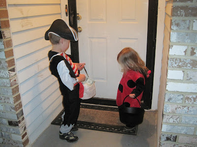 The actual trick-or-treating at our neighbors. Oddly enough they didn't get any candy. They got money, crackers, stickers, etc. I KNEW I liked my neighbors for some reason. =)